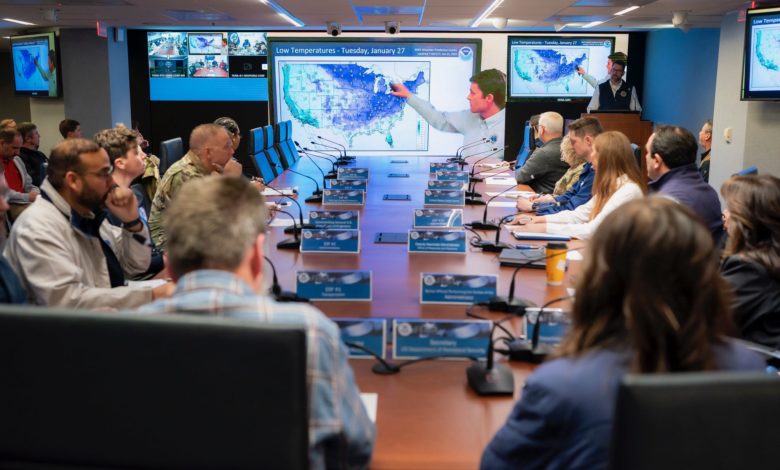 El presidente Donald Trump aprobó medidas de emergencia para al menos doce estados y la Casa Blanca evalúa ampliar ese alcance. La Agencia Federal para el Manejo de Emergencias (FEMA) organizó con anticipación el despliegue de suministros críticos, equipos de rescate y personal especializado en varias jurisdicciones. La secretaria de Seguridad Nacional, Kristi Noem, pidió a la ciudadanía que evite circular y que permanezca resguardada en sus hogares siempre que exista la posibilidad de hacerlo.