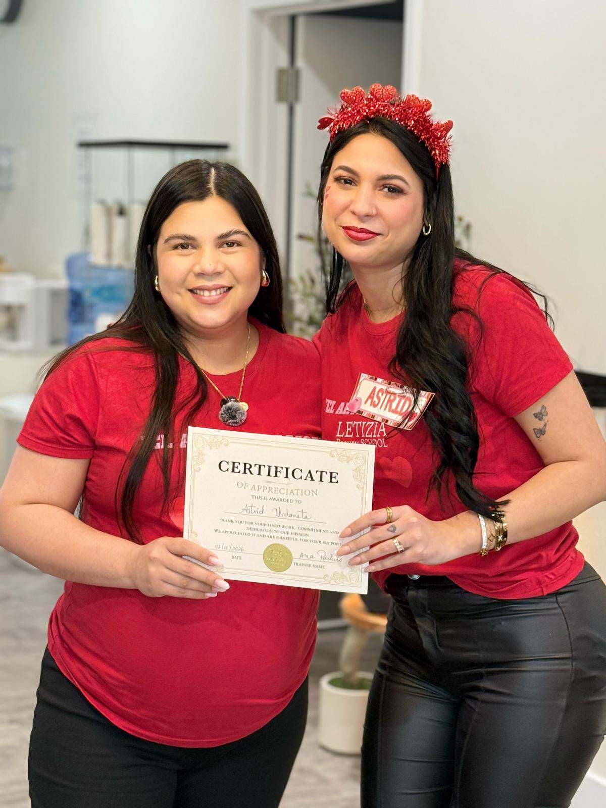 De igual manera, la institución expresa su reconocimiento a la CEO, Osdeilis Leal, por su liderazgo y visión estratégica al consolidar una de las primeras escuelas en el estado de Utah que ofrece a la comunidad hispanohablante la oportunidad de tramitar su licencia de belleza dentro de un entorno académico formal y en su idioma.