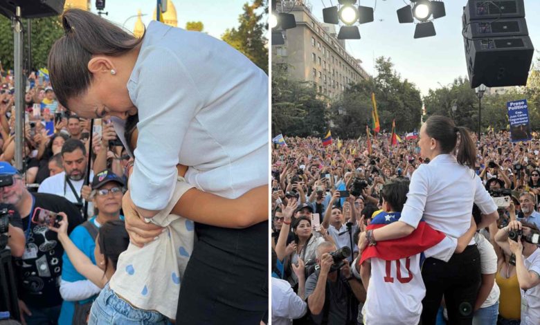 Miles de venezolanos acudieron al evento y recibieron a Machado con banderas, camisetas de la selección “vinotinto” y diversos símbolos de identidad nacional. La dirigente aprovechó la ocasión para dirigirse directamente a la comunidad migrante y plantear la necesidad de reconstruir el país con la participación de quienes salieron por motivos políticos o económicos.